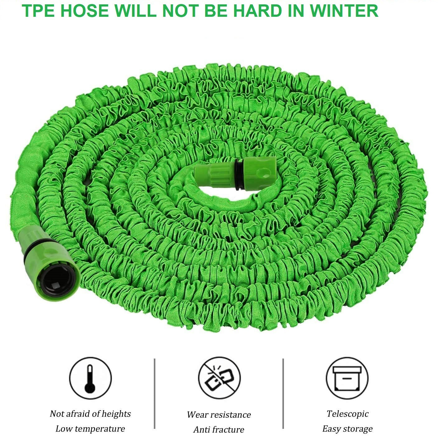 - Quickly expands to 3 times its original size when water is turned on, and fully retracts to the original length when water is off.